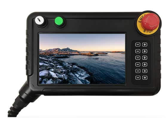 按鈕一個(gè)三段位安規使能開(kāi)關(guān),一個(gè)鑰匙開(kāi)關(guān);一個(gè)帶燈自鎖開(kāi)關(guān),一個(gè)安規急停開(kāi)關(guān)